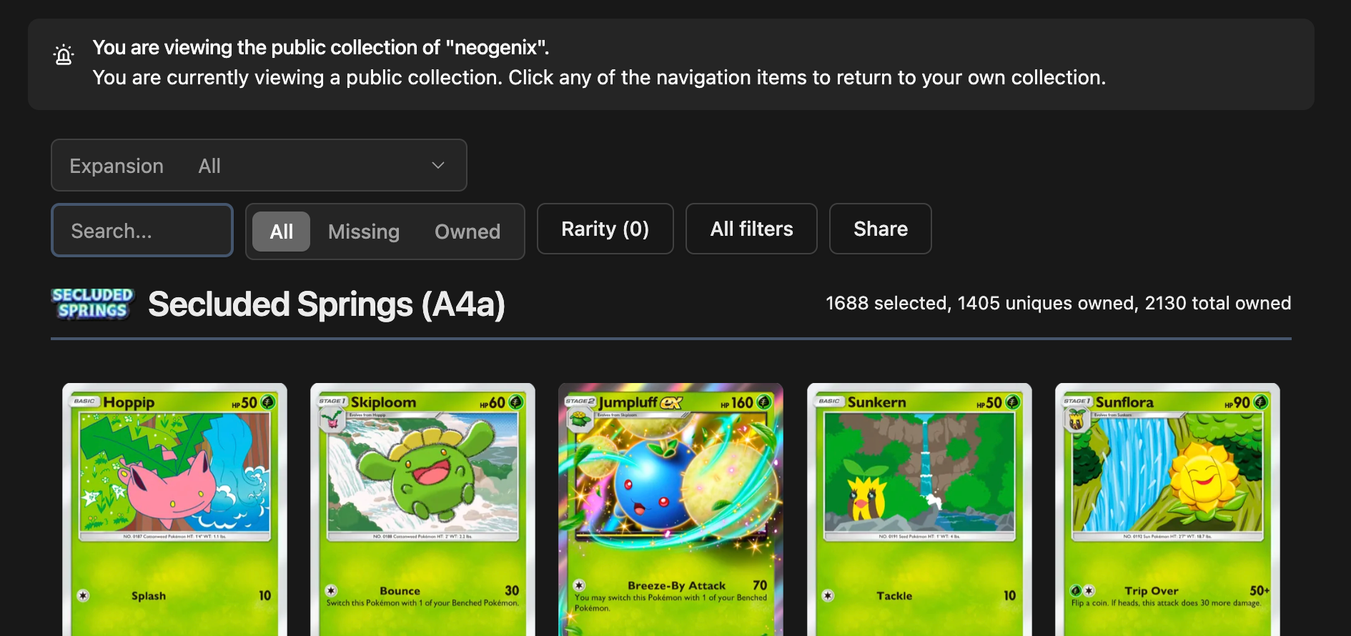 From there, we added public trading pages. These made it possible to see which cards could be traded between you and another player directly from their collection. It gave trading a much clearer direction.