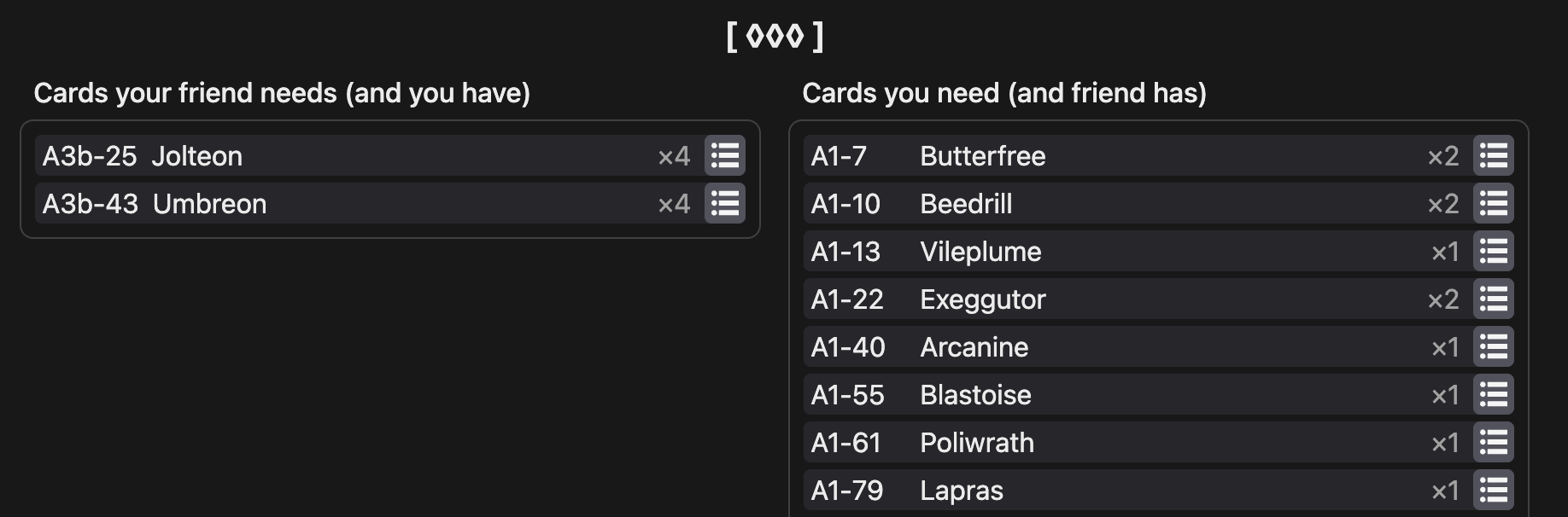 At the start, you could only see your own cards and share a list by copying it to your clipboard. It worked, but it wasn’t the smoothest way to trade with friends.